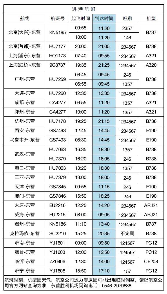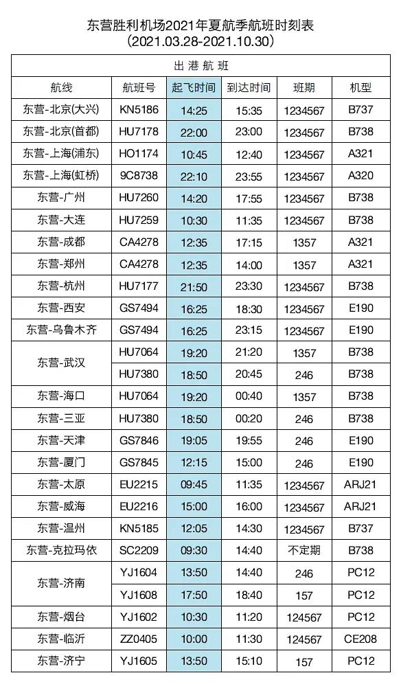 记者从东营胜利机场获悉,自4月1日起,烟台-东营航班时刻提前至12:00-12:50。