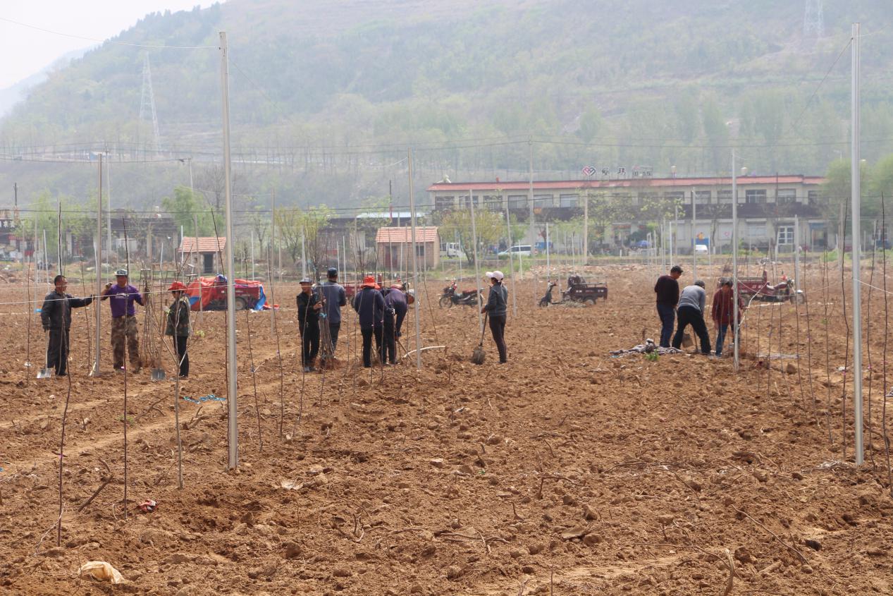 春和景明,万物蓬勃生长,孕育着希望。近日,在张家坡镇前瓜峪村,百亩田园间,在70岁老党员宋秀堂的带动下,三十余名村民一起迎着朝阳,挥锹挖坑、扶直苗木、培实新土……既分工,又合作,道道工序细致认真,各个环节衔接有序,大家劲往一处使、汗往一处流,现场一派繁忙热闹的劳动景象,共同用勤劳的双手为张家坡镇省级现代农业产业园植新苗、育新果,增“红利”。