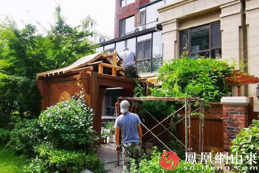 保利·紫薇郡小区一楼有64户业主不同程度存在院落外扩、侵占绿地等公共区域的行为。小区物业和黄务街道办事处自5月下旬开始,先后3次在小区下发限期整改通知,并通过小区管家逐户通知业主自行整改其违法行为。7月4日,黄务街道联合芝罘区住建局、区综合行政执法局等部门,对违规侵占小区绿地行为进行集中清理整治,清理违规侵占绿地27户,剩余37户业主承诺自行拆除违建,退出侵占的公共区域。