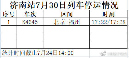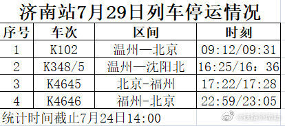 中铁济南局济南站最新消息,受水害影响,济南站7月26日Z105次济南—乌鲁木齐停运。