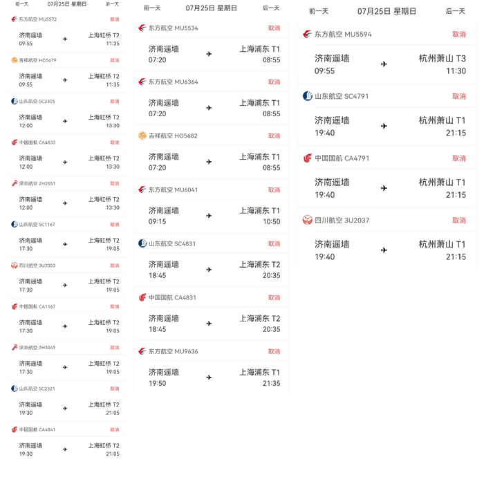 7月25日航班情况