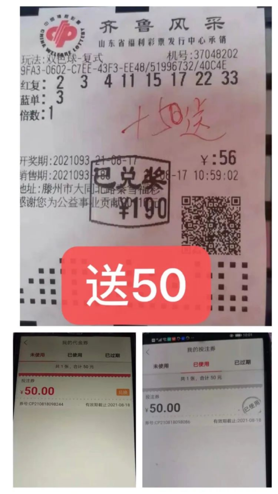 温馨提示大家:本次活动仅限“8+1”和“9+1”红色球号码复式彩票,中奖彩票需先到销售站进行兑奖,兑取双色球游戏中奖奖金后,再使用“山东福彩”APP扫票领取投注券。若中得大奖后,需先到省市福彩中心办理完毕兑奖手续后,再使用“山东福彩”APP扫票领取投注券。投注券领取后当天有效,切记及时核销!投注券仅可用于投注双色球游戏,投注券领取截止日期为活动结束次日起三日内,逾期未领取或当日未核销视为自动放弃。