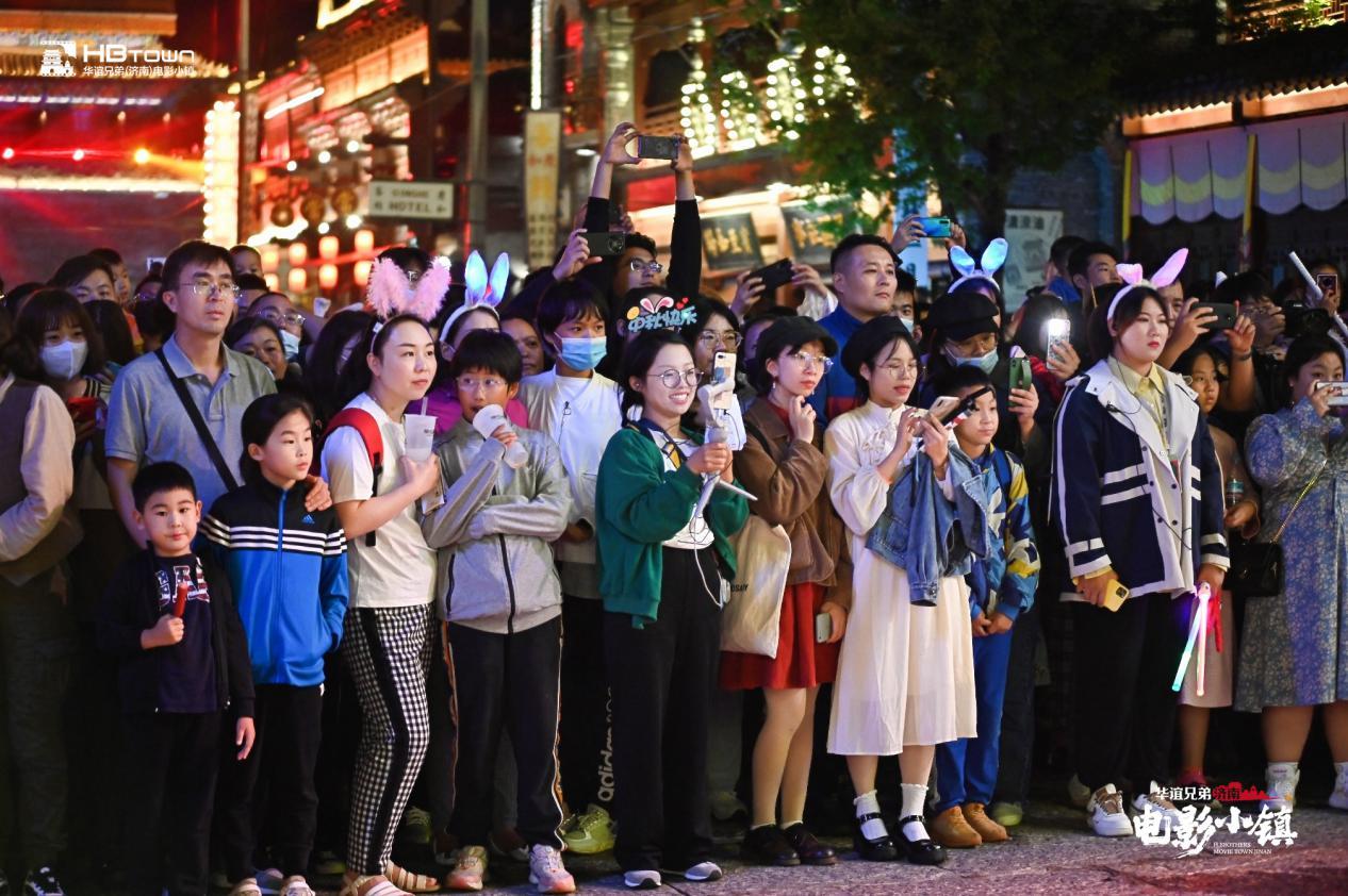 中秋之夜,月色皎洁,众人团聚在民国风情浓郁的华谊兄弟(济南)电影小镇内一同赏灯,观看精彩表演,打卡灯陈夜景,灯火璀璨,欢乐不停上演。