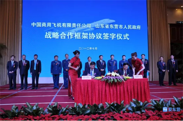 2012年对于东营胜利机场来说是具有重要意义的一年。10月,东营市政府与中国商飞公司签订战略合作框架协议,明确了未来合作规划。2015年,为满足中国商飞C919大型客机及未来宽体客机试飞需求,机场调整了各类规划,将原2800米跑道延长至3600米,同时升级改造了通导、灯光、消防等设备设施。