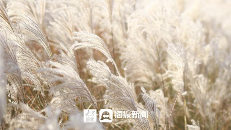 冬日,日照市五莲县白鹭湾里,芦苇花开。高低错落的芦苇迎风飘荡,似云般在风中摇曳,演绎着冬日的一段曼妙风情,呈现出一幅优美和谐的生态画卷。
