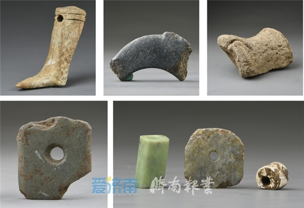 吕村遗址出土的鹿角靴形器、牙壁、鲸鱼骨、石钺、玉饰件