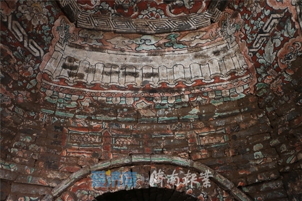 济南元代郭氏家族墓地M12前室南壁上部彩绘建筑