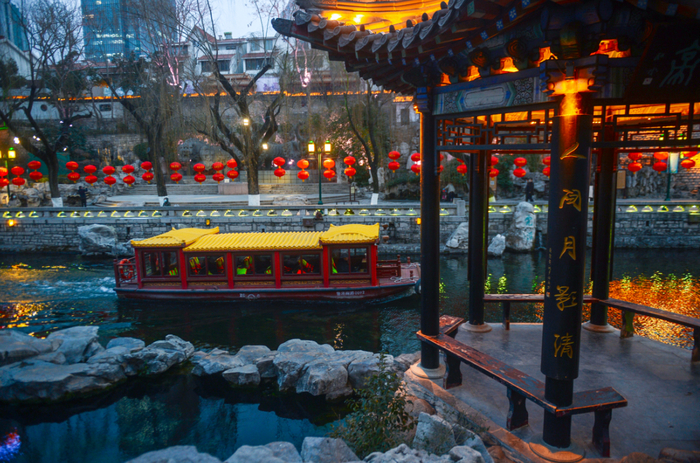 在船上欣赏优美的泉城景色,真是再浪漫不过了。(温馨提示:护城河游船自2月18日开始暂时停航,详情请点击“关于护城河游船暂停运行的通告”)