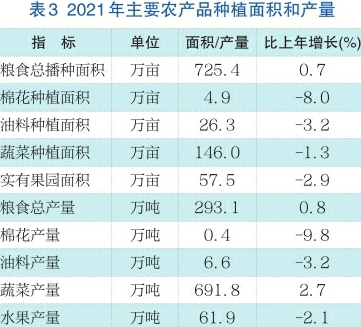 “菜篮子”供保能力稳中有升。全年新建“菜篮子”保供园区29个,直通车达到287辆,完成新改扩建生猪养殖场项目32个。蔬菜总产量691.8万吨,比上年增长2.7%;油料总产量6.6万吨,下降3.2%;水果总产量61.9万吨,下降2.1%。