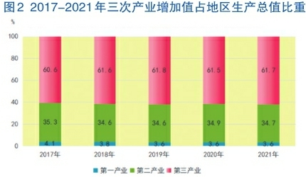 服务业支撑作用持续显现。全年服务业实现增加值7059.4亿元,比上年增长9.2%,占全市生产总值(GDP)比重为61.7%,对经济增长贡献率为79.1%。规模以上服务业[7]营业收入增长19.9%。新兴行业增长较快,互联网和相关服务、科技推广和应用服务业分别增长59.4%、57.2%。物流运力不断提升,重点物流企业实现营业收入807.6亿元,增长22.9%。其中,多式联运和运输代理业、装卸搬运和仓储业分别增长29.6%、29.2%。