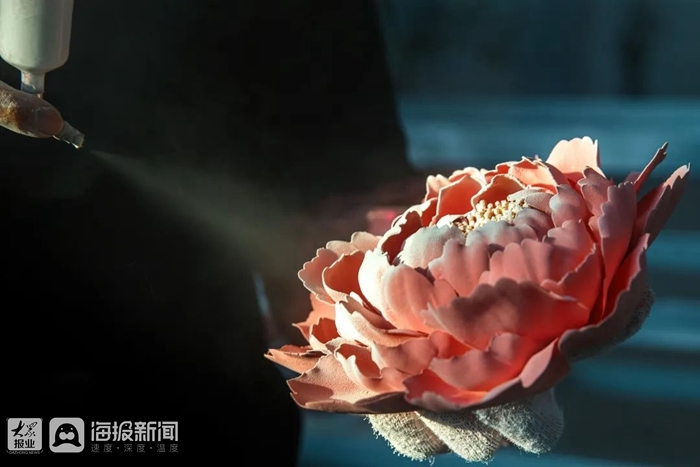 揪下一小撮泥土,泥土在捏花技师手中被捏出牡丹花瓣的模样,等集中到一定数量后,再把花瓣塑造成牡丹花盛开的形状。