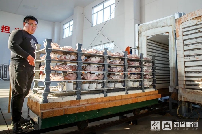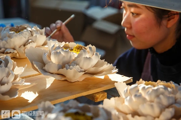 入窑烧制,在1300℃高温下三次烧制,前后经过二十多道工艺制作流程,最终形成菏泽独有的艺术瓷种,被誉为“永不凋谢的牡丹花”。