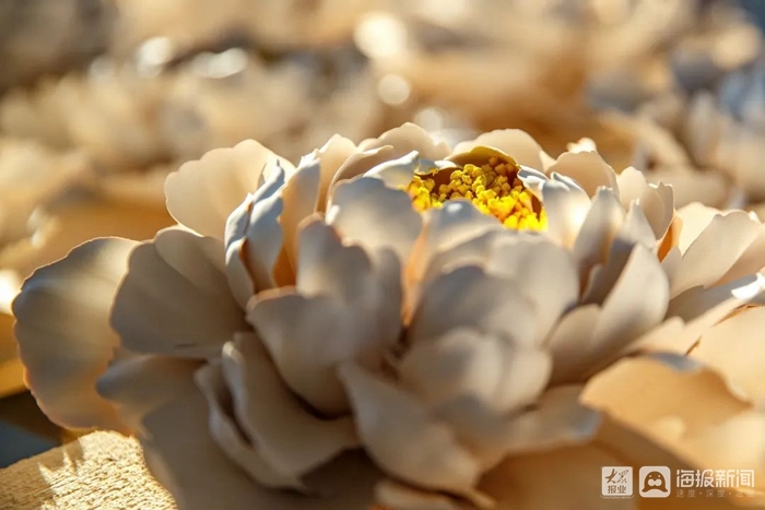 素胎“绽放”的牡丹,造型端庄,花瓣层次分明、色彩鲜艳、造型逼真。