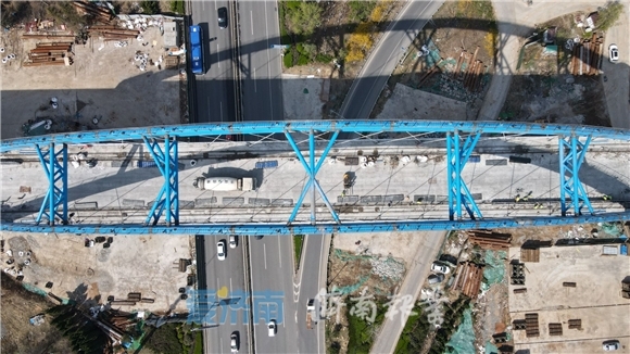 3月28日,济莱高铁港沟站特大桥上跨邢村立交互通匝道段下部辅助支撑架已经拆除完成,工程已全面转入桥面施工阶段,从高空俯瞰高架长龙从邢村立交桥开始沿着高速公路西侧向北延伸,气势恢宏壮观。济莱高铁港沟站特大桥全长4352米,上跨邢村立交互通匝道连续梁全长为248米,是该标段高风险施工桥梁之一,采用全封闭菱形挂篮施工,以确保施工更加安全。