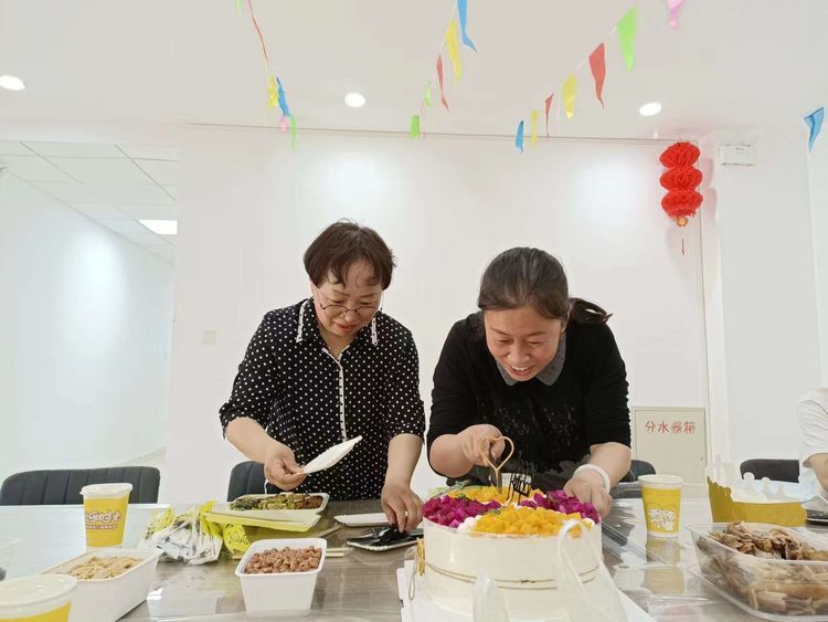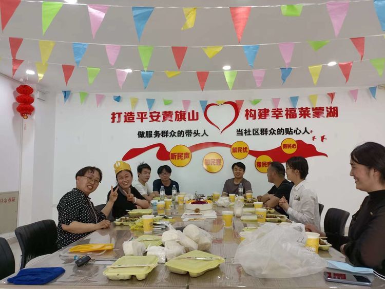 刘新明是圣井街道黄旗山社区的一名社区工作者,也是一名网格员。4月10日是她的38岁生日,这天,黄旗山社区党支部书记、居委会主任付丽和在忙碌的间隙带领大家在吃午饭时给刘新明过了一个难忘的生日。