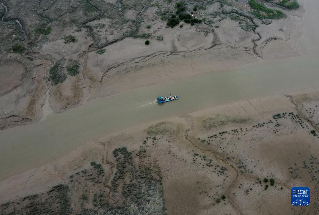 一艘渔船在闽江河口湿地浅滩里穿行 4月22日是世界地球日。记者来到地处福州市长乐区东北部闽江入海口南侧的闽江河口湿地,探访总面积2381.85公顷、福建省最大的原生态河口湿地。