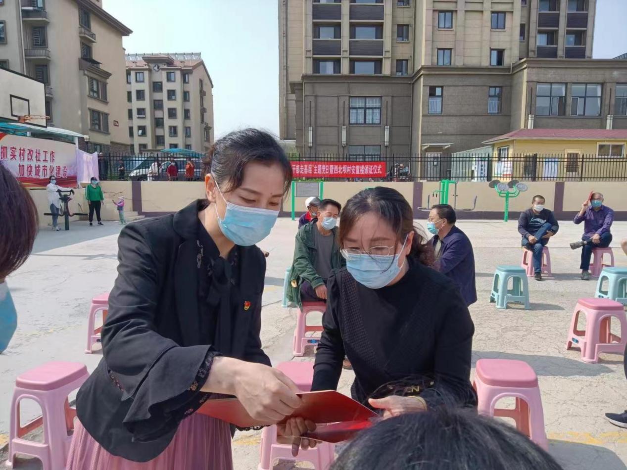 启动会商机制,与税务局、住建局等相关部门联动,同时与西北坝村村委、意祥房地产开发公司多次商讨、切磋。从按照历史遗留问题办理开发商不动产权大证程序的启动,到村民、村委、开发商三方拆迁安置协议的理顺,再到如何开具安置房发票与落实税费减免政策,最终提供什么样的资料办理安置户的不动产权证书等方面,逐条理顺细节要点,经共同努力,旧村改造回迁安置房办证取得突破性进展。