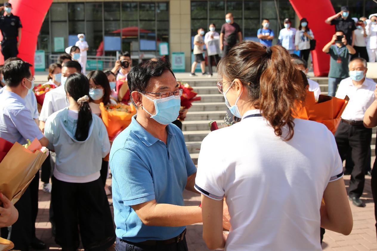 随着队员们乘车抵达医院,侯俊平、陈玉国向队员们献上鲜花,院领导向依次经过的队员们握手致意,大家怀着激动的心情,热烈欢迎英雄回家。