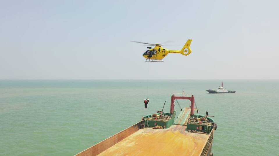本次实战演练由日照市海上搜救中心主办,日照海事局承办,市应急局、市卫健委、日照港、山东高速华通航空、日照锐翔通用航空等10家单位近百人参演,调用了专业救助直升机、固定翼飞机,以及海巡船、施工船、拖轮、消防车等重型搜救装备。