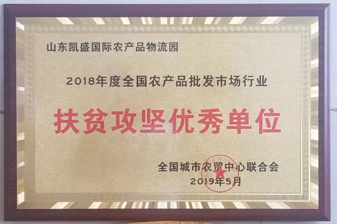 近日,由全国城市农贸中心联合会主办的“2019年中国农产品批发市场行业年会”成功召开,山东凯盛国际农产品物流园一举斩获 “2018年度农产品批发市场行业成长奖”、“2018年度全国农产品批发市场行业百强市场”和“2018年度全国农产品批发市场行业扶贫攻坚优秀单位” 三项大奖。