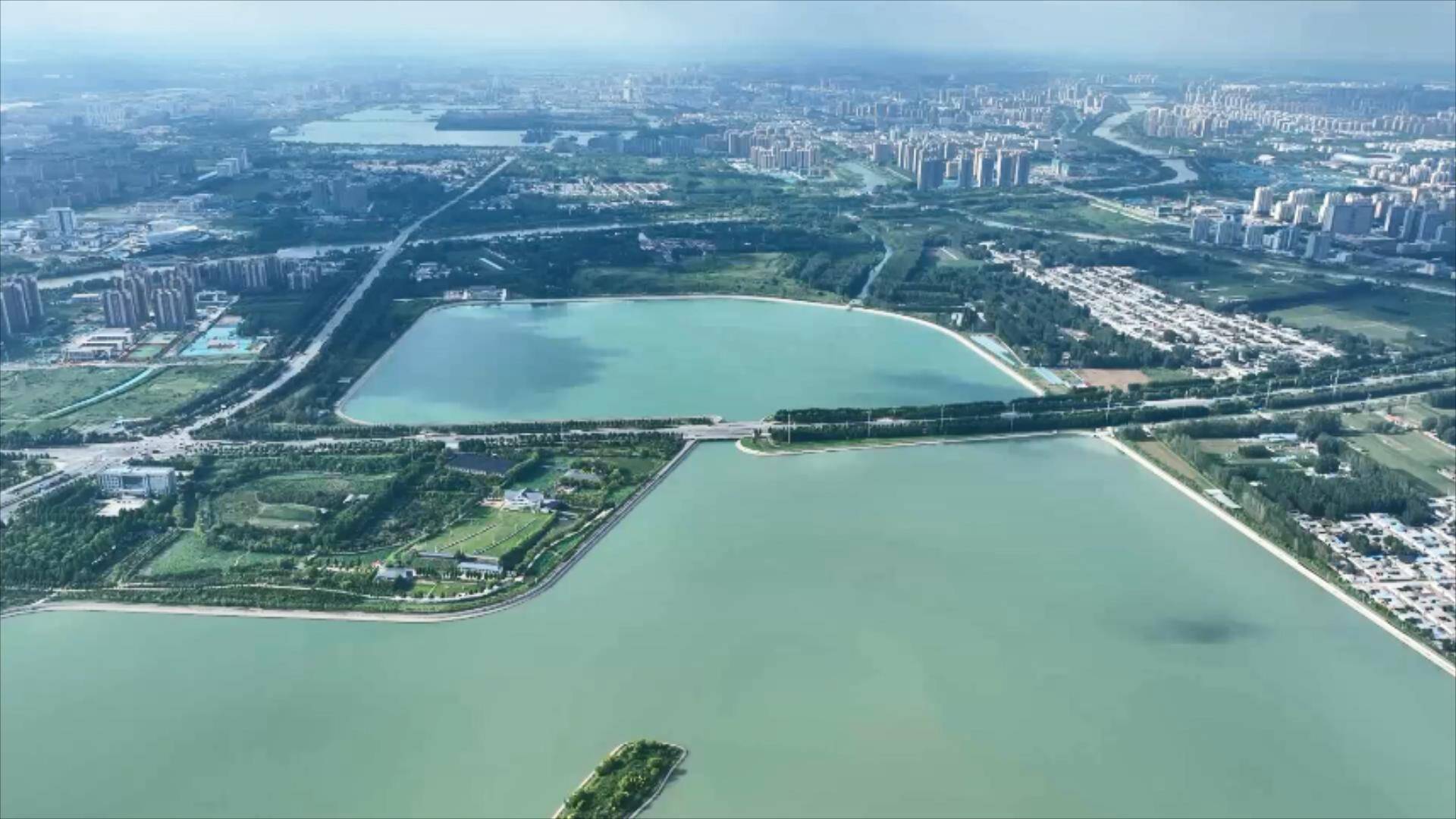 齐鲁网·闪电新闻7月8日讯 雨过天晴,位于聊城市江北水城旅游度假区的望岳湖上,碧波荡漾。波光粼粼的湖水与天空中缓行的云朵交织成一副美妙画卷,美丽风光尽收眼底。让我们跟随无人机镜头一起感受这盛夏的望岳湖。
