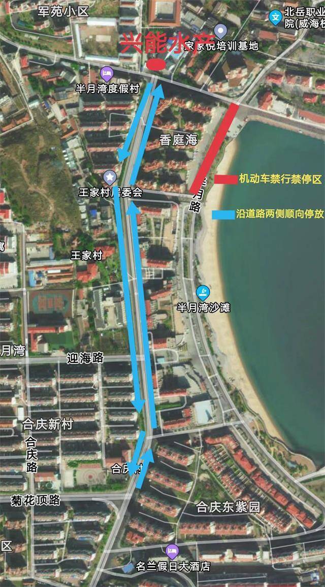 二、路段:威海市区的半月路,南至香庭湾小区南无名路,北至与环海路交叉口。