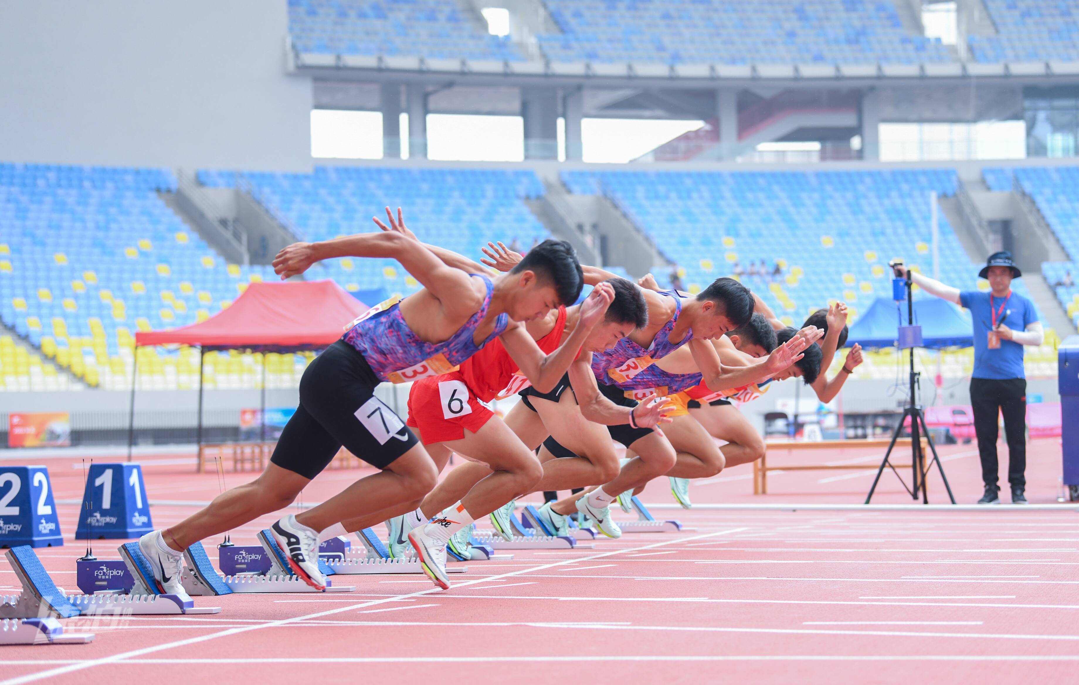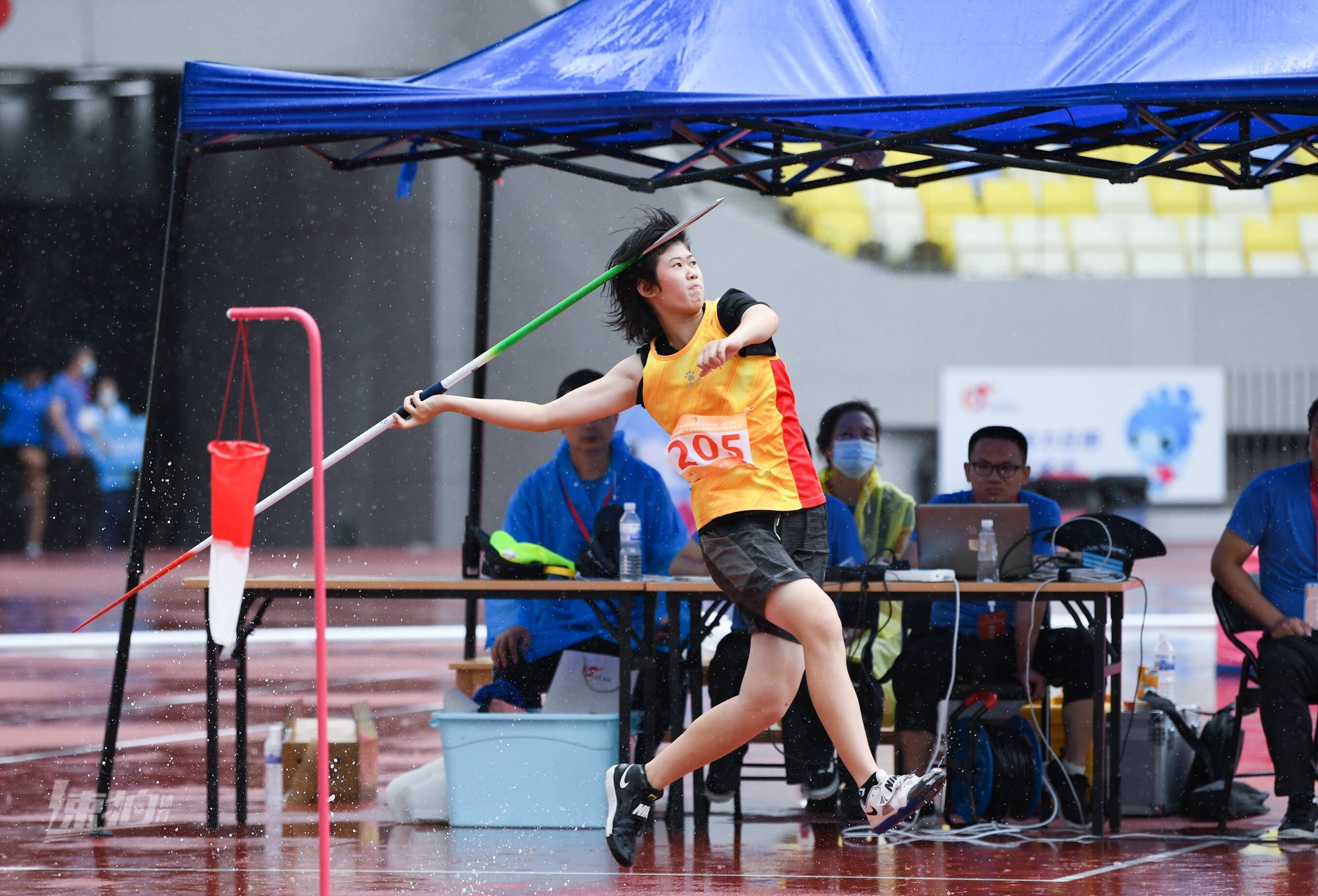 这次比赛作为第25届省运会田径比赛的“带妆彩排”,是对场地器材、计时计分系统、设施设备、运行保障、安保、防疫医疗各环节的全方位检验。比赛当天突降大雨,运动员们热情不减,在赛场纵横驰骋,顽强拼搏,淋漓尽致地展示田径运动的力量与健美。