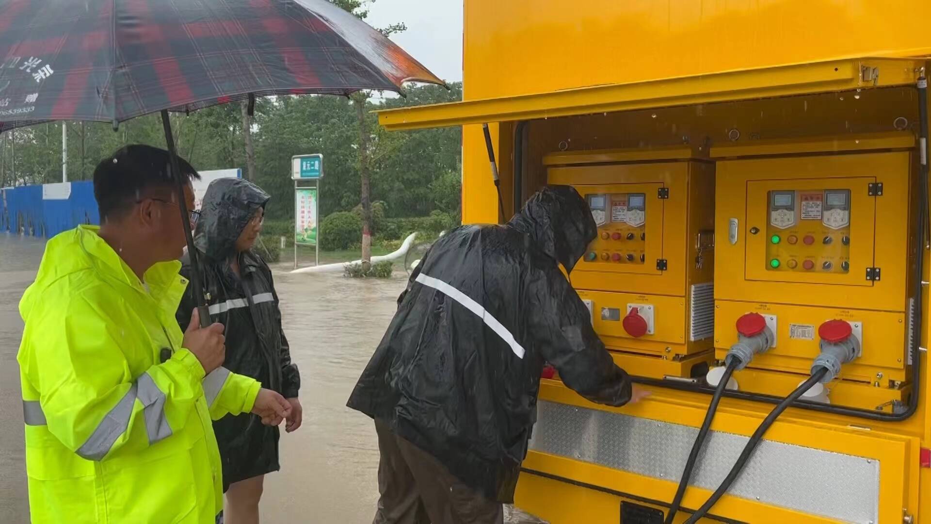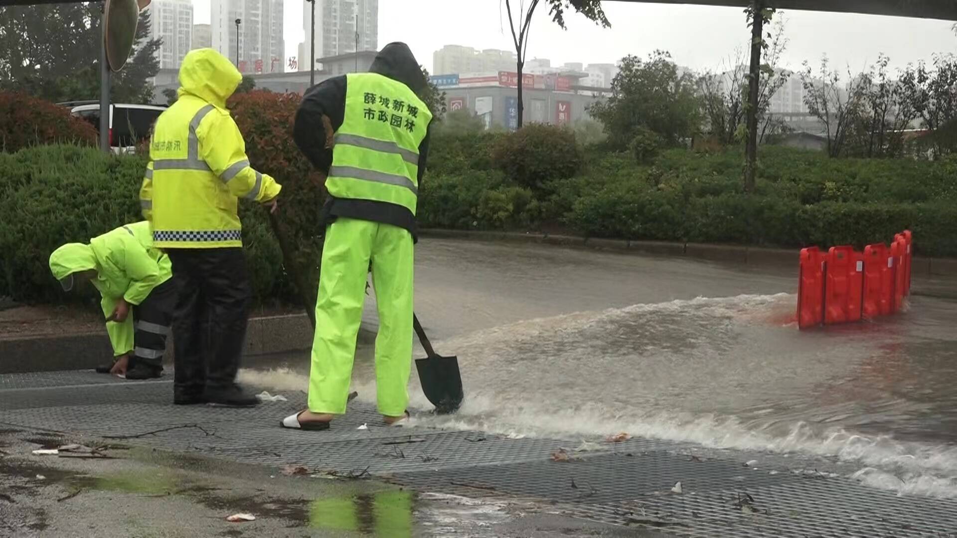 在欣赏雨景的同时,闪电新闻记者了解到,受降雨影响光明大道积水严重,薛城区市政人员第一时间赶到现场,利用便携式挡水板,将径流水分流到泄洪渠,加速积水排放,工作人员的身影形成了一道亮丽的风景线。经过工作人员的集中奋战,城区主要街道未出现大面积积水现象,保障行人、车辆通行安全。