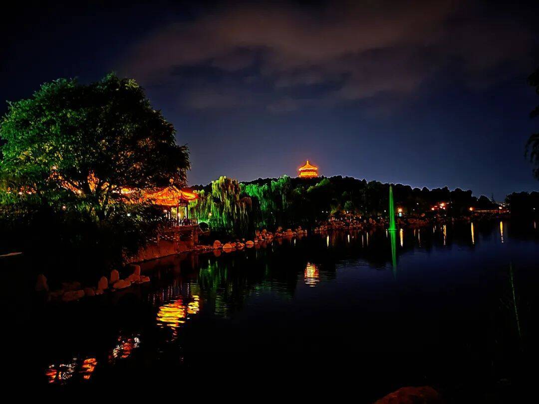 齐鲁网·闪电新闻8月2日讯 夜幕降临时,泰山脚下美丽的虎山公园与色彩斑斓的灯光交相辉映,氤氲夜色下别有一番风味。