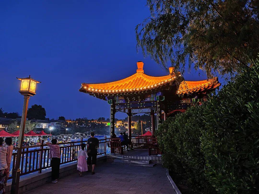 夜美了,人乐了。美丽夜景下,市民游客或是散步,或是运动休闲……人们抛却喧嚣烦恼,尽情享受虎山公园的慢生活。