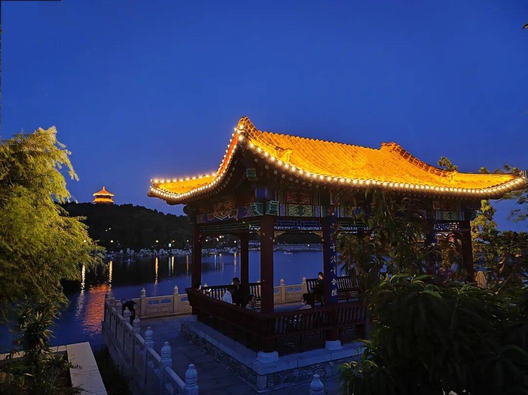 在这醉人的夜色中,亭台楼阁在夜色中显得色彩斑澜、流光溢彩,让沿岸的每一处景点变得姿影卓约、如梦如幻。