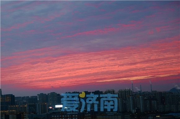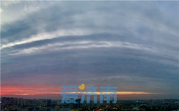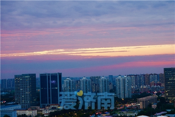 8月15日,傍晚的济南彩霞满天如梦如换,热烈的红色、明亮的金色与城市相互辉映如油画般绚丽。