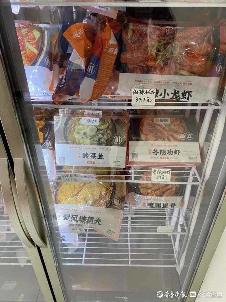 宫保鸡丁9.9元、脆皮乳鸽22.9元、新人下单菜品总价打5折……济南万象新天社区的一家预制菜门店,各种折扣优惠让人心动。店面虽不大,但菜品齐全,店内多个保鲜冰柜中,摆放着的预制菜品多达上百种。