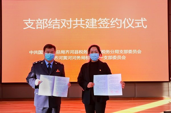参观结束后,在小八里管理段二楼会议室,齐河县税务局第二税务分局党支部与齐河黄河河务局机关第一党支部集中开展了党的二十大精神专题学习,观看齐河黄河河务局机关第一党支部宣传片,签订了结对共建协议。