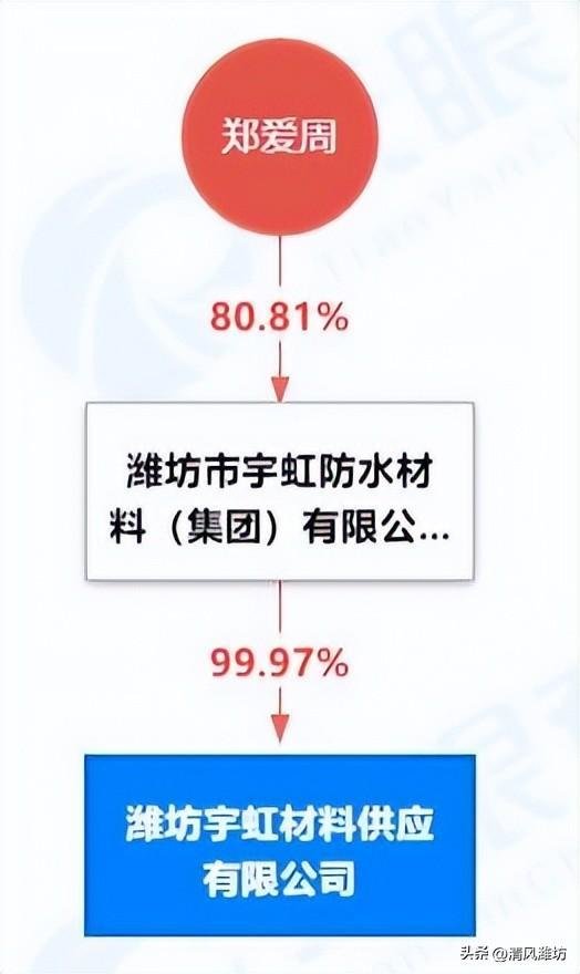 据了解,潍坊市宇虹防水材料(集团)有限公司成立于1999年02月09日,注册地位于山东省潍坊市寿光市台头工业区,目前法定代表人为王炳成,实际控制和最终受益人为郑爱周。对外投资9家公司,具有6处分支机构。