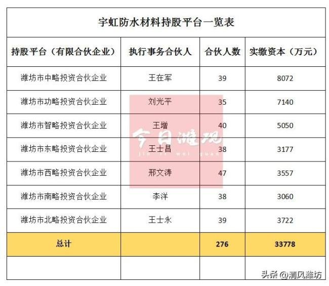 以此方式,潍坊市宇虹防水材料集团募集高达3.37亿持股款。