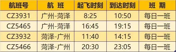 同时,南方航空于春运期间,将菏泽=广州航线的执飞班机增加至每天2个班次。