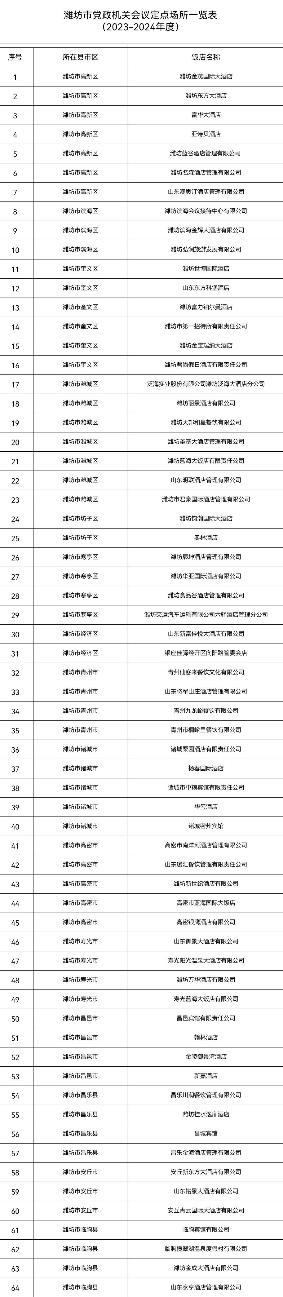 原标题:最新!潍坊确定64家党政机关会议定点场所