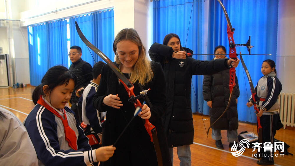 在乾赵小学的射箭馆里,小学生们则化身“小教练”,帮助大学生们掌握中国传统弓箭、现代反曲弓箭的操作要领,现场体验“百步穿杨”的乐趣。实践队队员们还参与到孩子们的社团课程中,共同制作手工作品,演奏口风琴乐曲,合力完成科学实验,在互动交流中增长知识、增进友谊。
