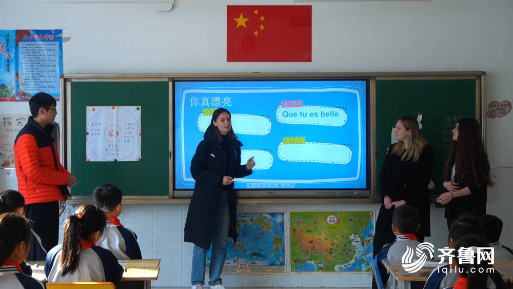 “Merci!”“Gracias!”“Grazie!”在德州市德城区乾赵小学,三年级的小学生们正在练习使用法语、西班牙语、意大利语等四国语言,讲述“你好”“谢谢”“多少钱”“生日快乐”等日常交际用语。授课的老师们来自于清华大学“点点星光”中外学生联合实践支队,他们通过课件讲解、互动提问等多种方式,帮助孩子们锻炼口语表达,了解外国文化。