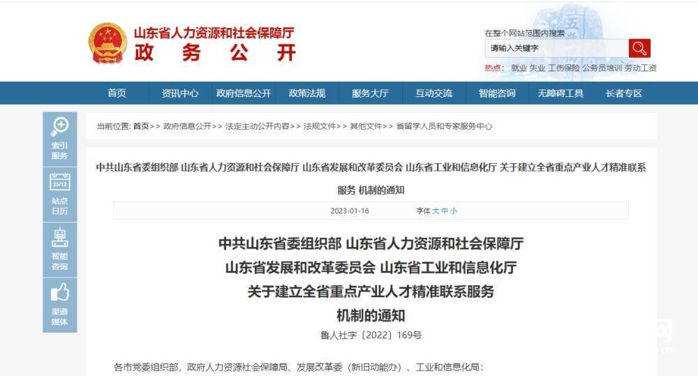 齐鲁网·闪电新闻2月20日讯 为进一步强化高层次人才服务工作对山东省重点产业发展的支撑作用,近日,省人力资源社会保障厅联合省委组织部、省发展改革委、省工业和信息化厅印发《关于建立全省重点产业人才精准联系服务机制的通知》(以下简称《通知》)。山东将以省市人才卡为载体,将全省优秀企业家、“十强”产业集群领军企业主要经营管理和技术负责人(不含各级党委管理的领导干部)等重点产业人才,分级纳入全省高层次人才绿色通道服务范围,由各市高层次人才服务窗口和省高层次人才服务联盟建立常态化精准联系服务机制,强化人才服务保障,助力全省产业发展。