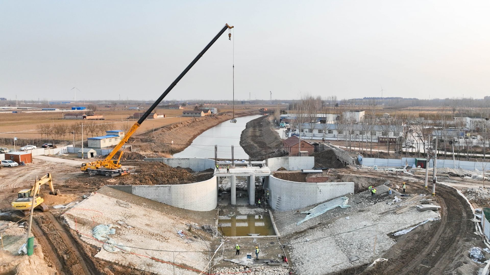 “这个项目穿涵4.74公里,清淤26.9公里,新改建桥闸20座。现在为了争取汛前1个月完工,我们安排了挖掘机20多台,吊车6部,增加人工125人,全力保证工程如期顺利完成。”德州市马减竖河综合治理工程建管处副主任李彬介绍,工程完工后,马颊河上游一旦遇超设计洪水时,可通过马减坚河向减河分洪30m3/s,灌溉期可向平原西部、德城南部提供灌溉水源通道,保障马颊河下游水库引黄供水安全。同时,工程还将打造3处水清景美、人水和谐的美丽河湖节点工程。