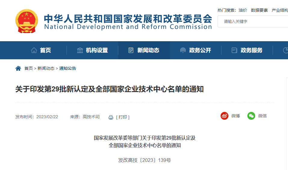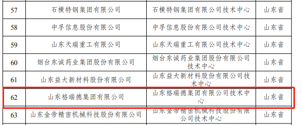 近日,国家发展改革委、科技部等部门联合发布2022年新认定(第29批)国家企业技术中心名单,山东格瑞德集团有限公司技术中心成功入选。