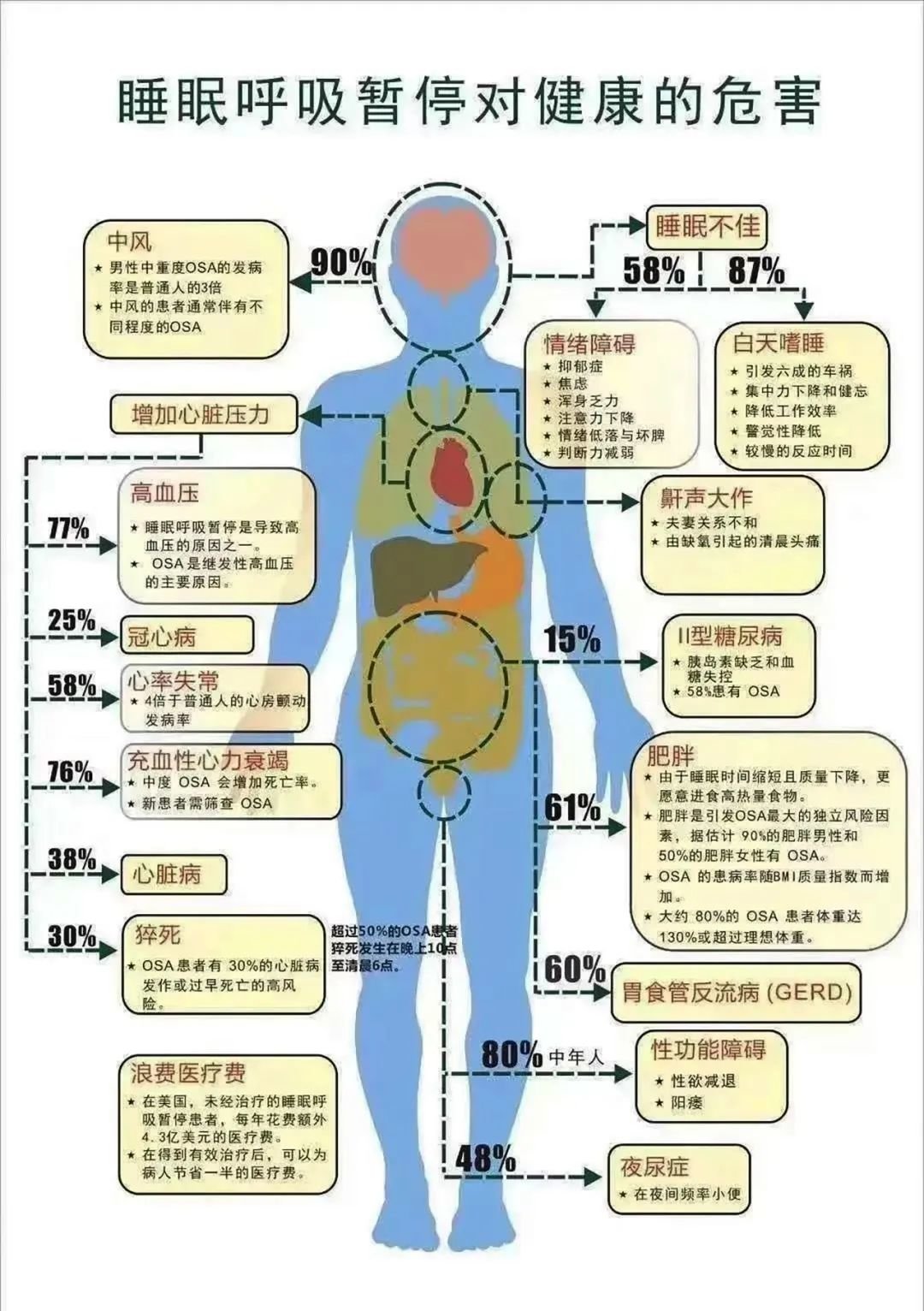 睡眠是人类的本能,人生三分之一时间在睡眠中度过,睡眠质量的好坏直接影响个体免疫和健康水平的高低。但是每个人都能睡好吗,鼾声如雷是睡得香吗?如果您已经出现以下情况,那就要警惕睡眠杀手——睡眠呼吸暂停综合征。