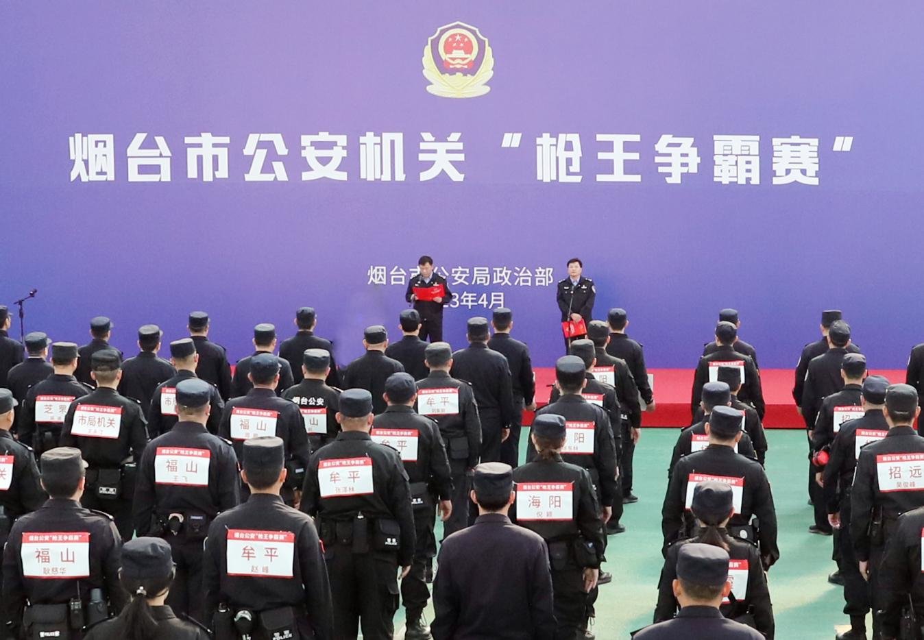4月20日,烟台市公安局举办全市公安机关“枪王争霸赛”。经过激烈角逐,莱州市局、市局海岸警察支队、市局机关分获团体前三名;李海军、潘高松、隋鹏飞、杨旭明分获局长组、所队长组、男民警组、女民警组“枪王”称号。