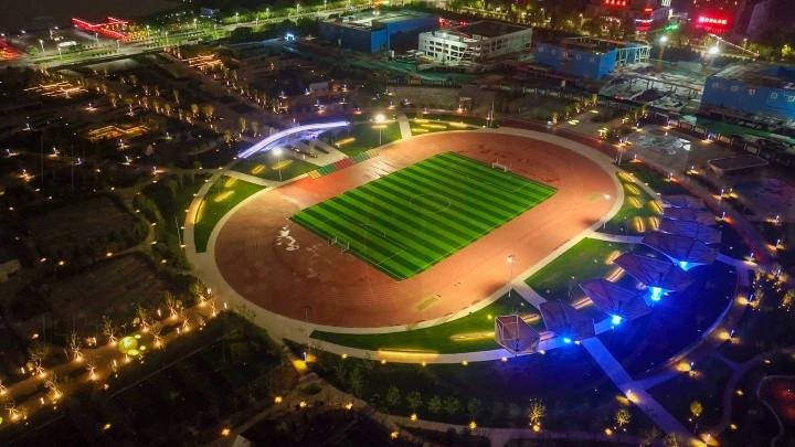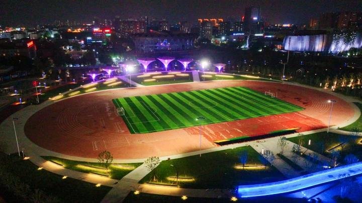 据了解,体育公园场馆区亮化突出建筑特点,通过层次感光色、立体感照射,与周围环境相互协调、营造氛围;充分考虑不同场馆的业态布局与功能定位,融合色调搭配、亮度调节、照射角度、灯光造型等技术,从不同视觉角度、不同照明模式等维度表现建筑特性与运动特色。
