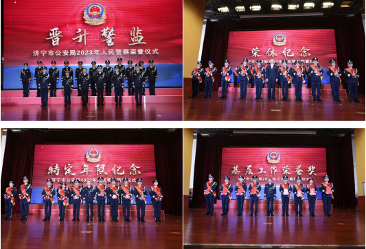 举行人民警察荣誉纪念仪式,颁发荣誉纪念章和证书,是贯彻落实《公安机关人民警察内务条令》,进一步凝聚警心、激励斗志,增强公安民警职业荣誉感和归属感的重要方式。警旗招展,见证着一辈辈公安民警的忠诚警魂;警歌嘹亮,唱响了济宁公安勇立潮头、续写荣光的时代赞歌;警徽闪耀,彰显出一代代济宁公安人的赤胆与忠诚。伴着雄壮嘹亮的《中国人民警察警歌》,仪式圆满落下帷幕。