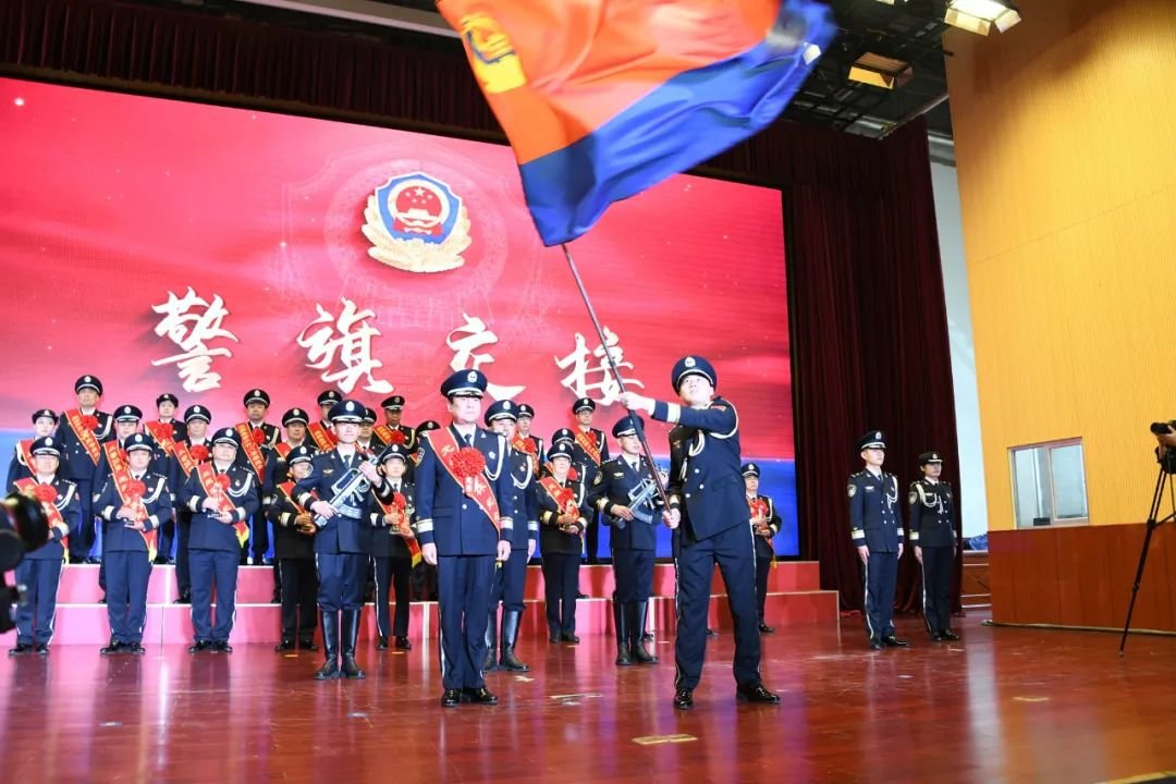 “我代表退休民警,把这面光荣的旗帜交给你,希望你们不辱使命、再立新功!”在警旗交接仪式中,济宁市公安局经侦支队原支队长李国代表老警将满载着荣誉、使命、责任和担当的警旗郑重传递到新警手中,勉励新警同志勇于传承济宁公安精神,不辱使命、再立新功。