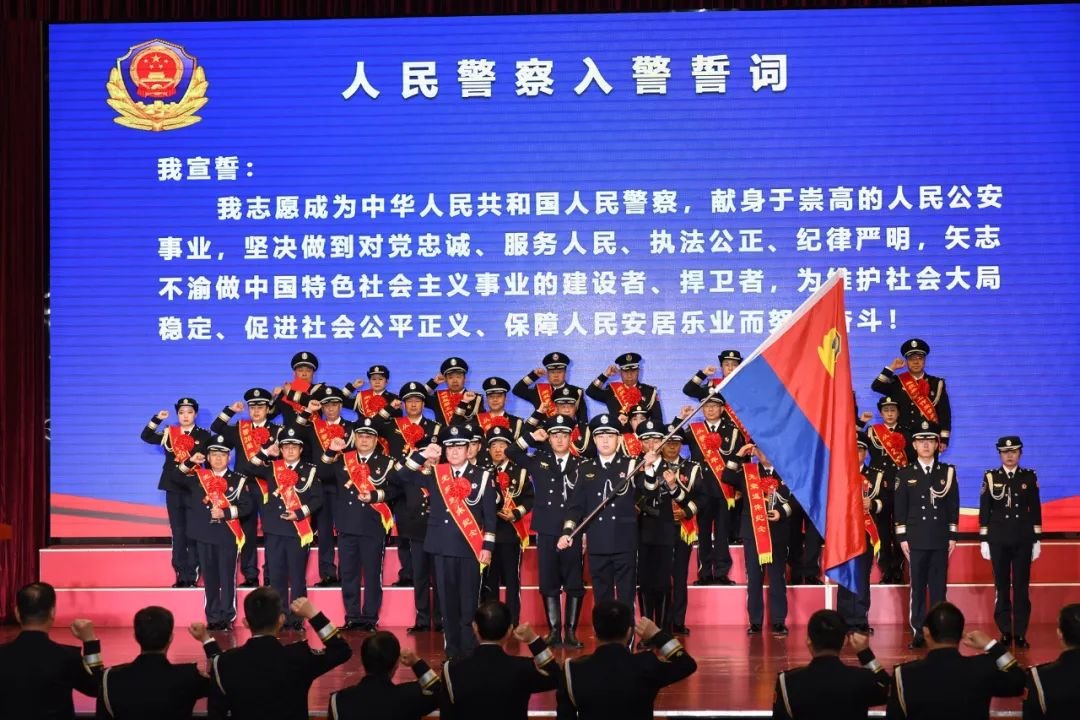 “保证完成任务!”新警代表作出庄严承诺并在场上挥动警旗,象征着济宁公安精神弦歌不辍、薪火相传。全体民警重温入警誓词,高举右臂,紧握右拳,庄严宣誓,誓言铿锵有力,句句掷地有声,铮铮誓言响彻大地,初心使命牢记心中。