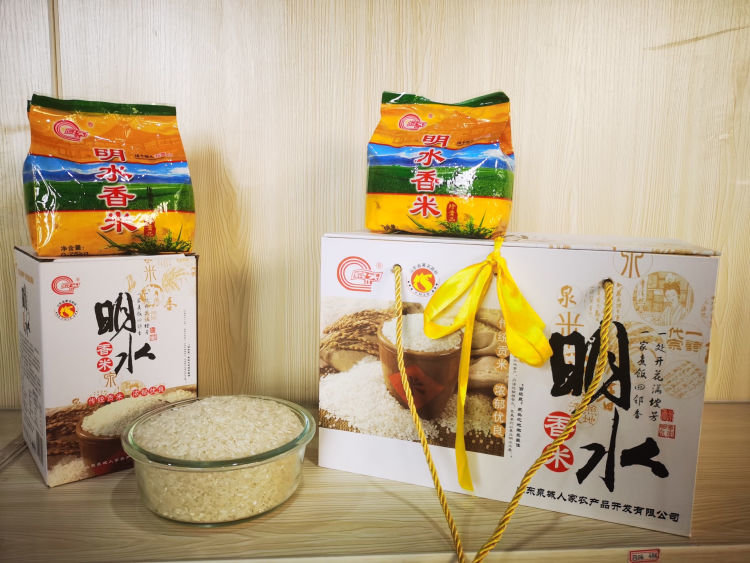 明水多甘泉,泉水常年喷涌,素有“小泉城”的美誉。清爽甘冽的泉水,优良的水质,特有的土壤和气候条件,为明水香稻种植提供了得天独厚的必要条件。明水香米香味浓郁,田间开花,既香飘远外,在蒸煮时,更是香味扑鼻、馥郁浓厚,故有“一株开花满坡香、一家煮饭四邻香”的美誉。2022年,在央视一套播出的电视剧《三泉溪暖》中“贡米”的原型即为明水香稻。